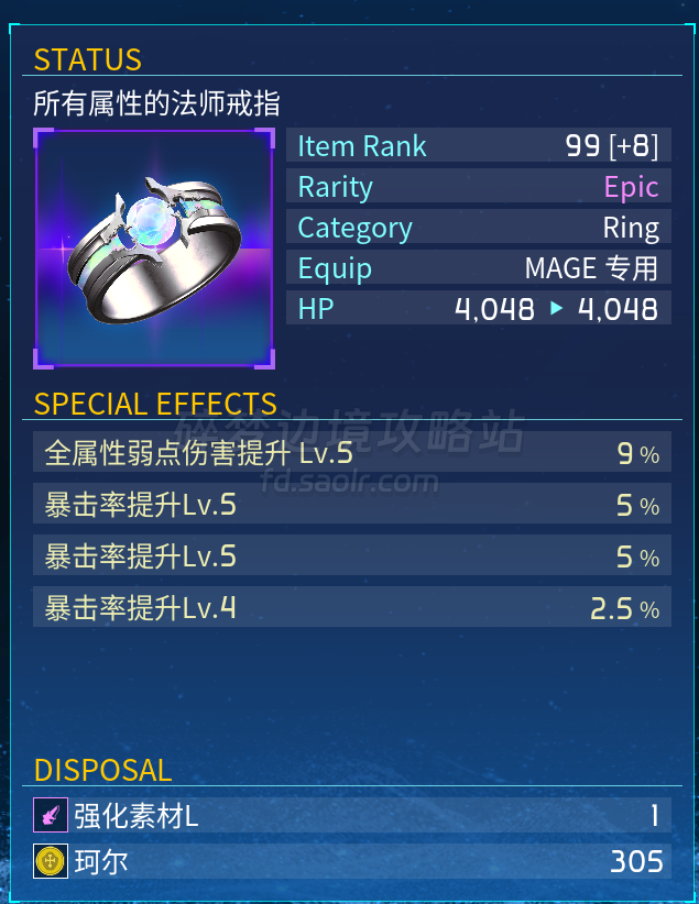 戒指:无特殊词条适配,选择4暴击。(光染武器和水伤武器可选近战+属性伤害,其余一律4暴击)