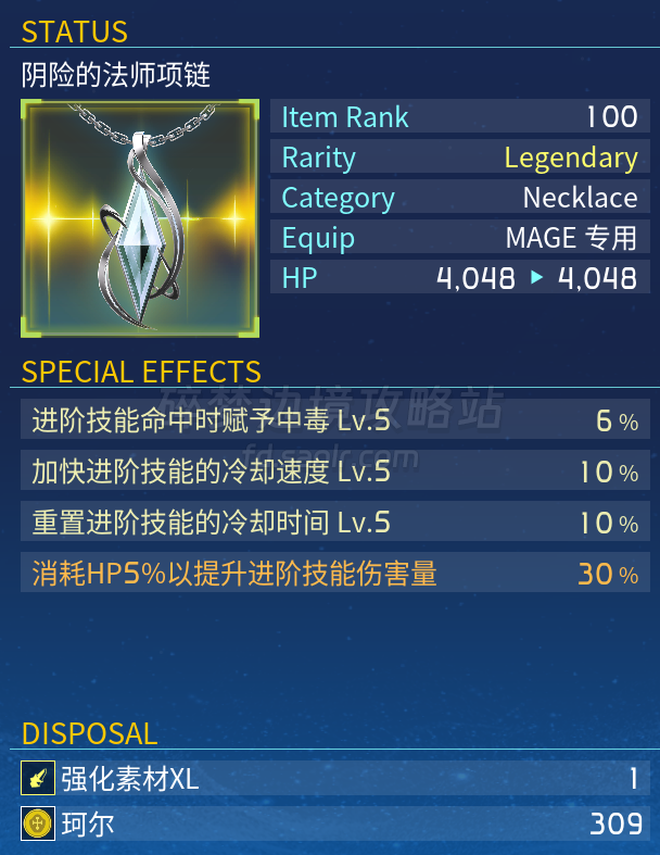 项链:1重置+2CD+消耗HP提升技能伤害。技伤项链对于优吉欧这种不能一直追击空战的角色非常重要,其扣血能够完美适配坚忍不拔,无可替代。