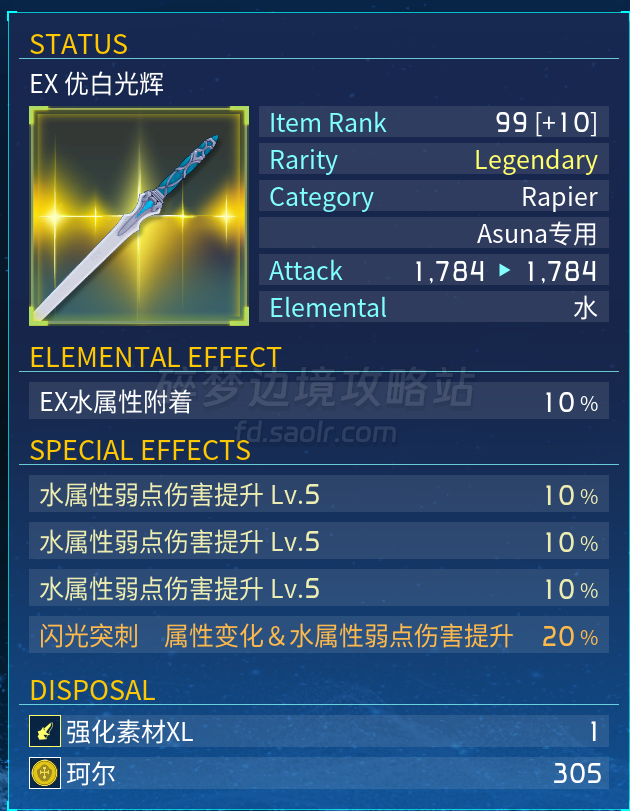 亚丝娜有着水属性的三技能染色,自然水武器的词条水染色为最优。