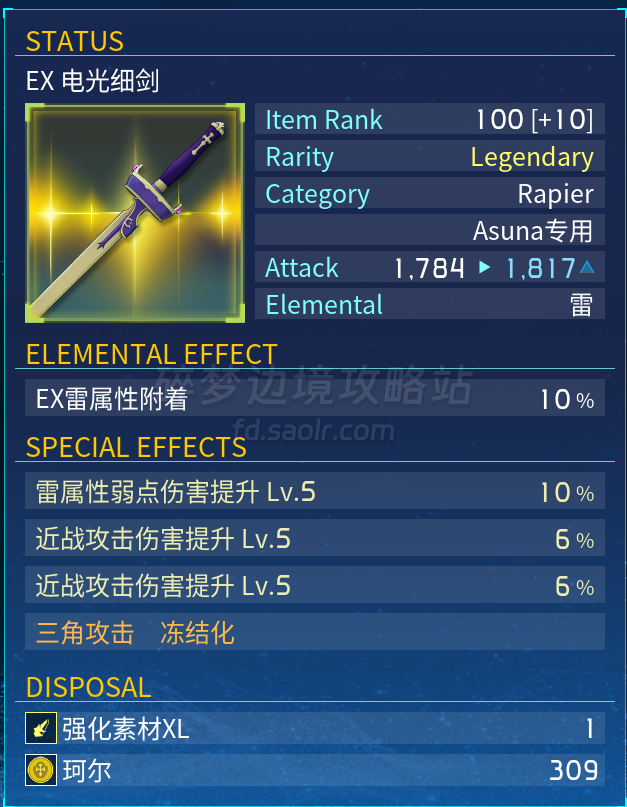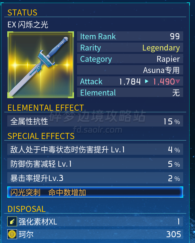 亚丝娜的三技能为固定光属性,但当武器属性为光时,其特化数量翻倍则会发挥很大的优势。