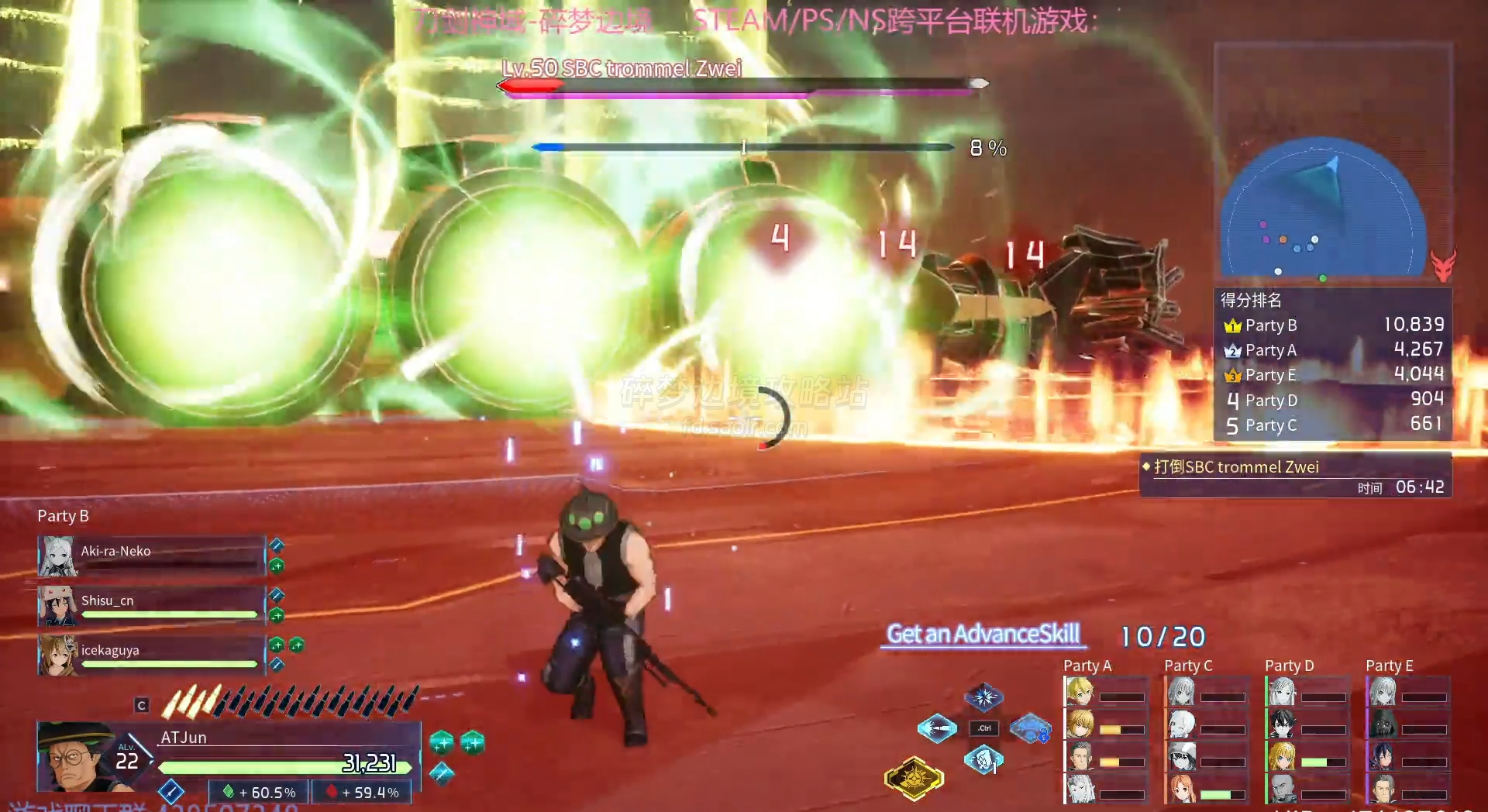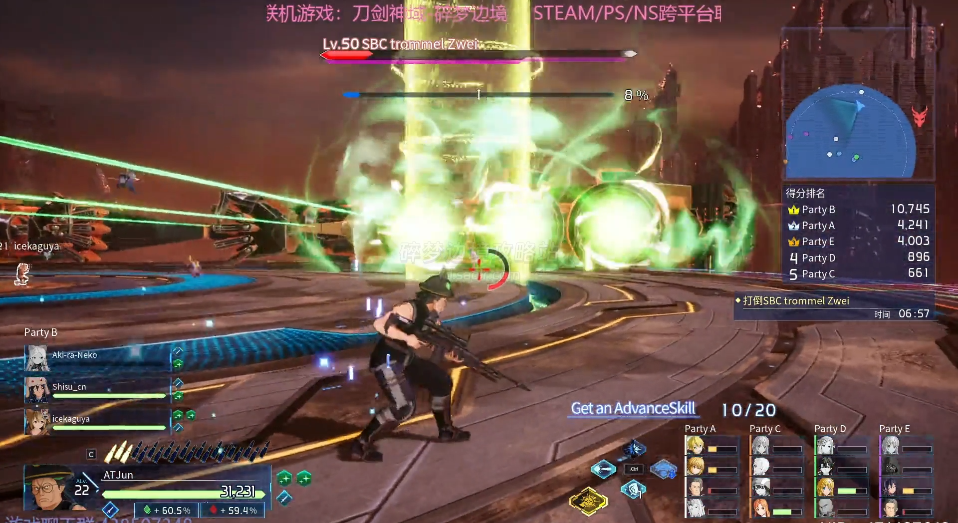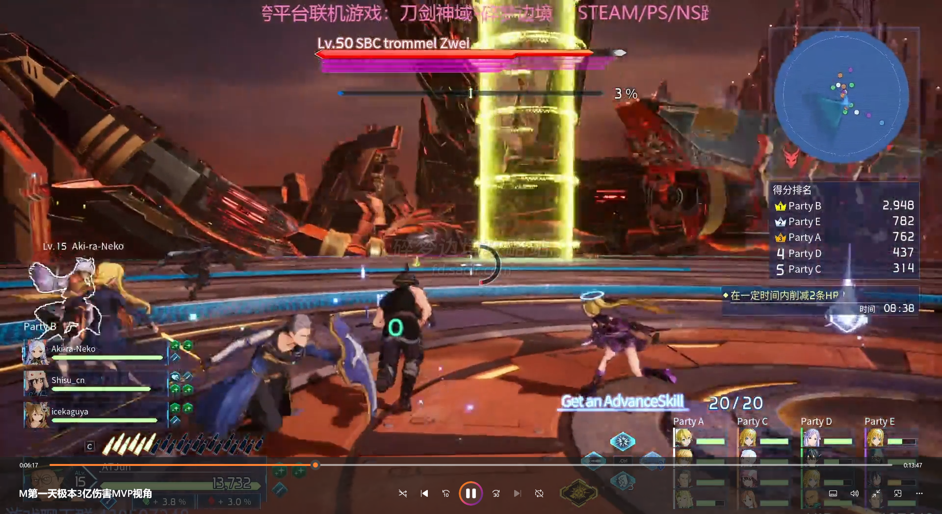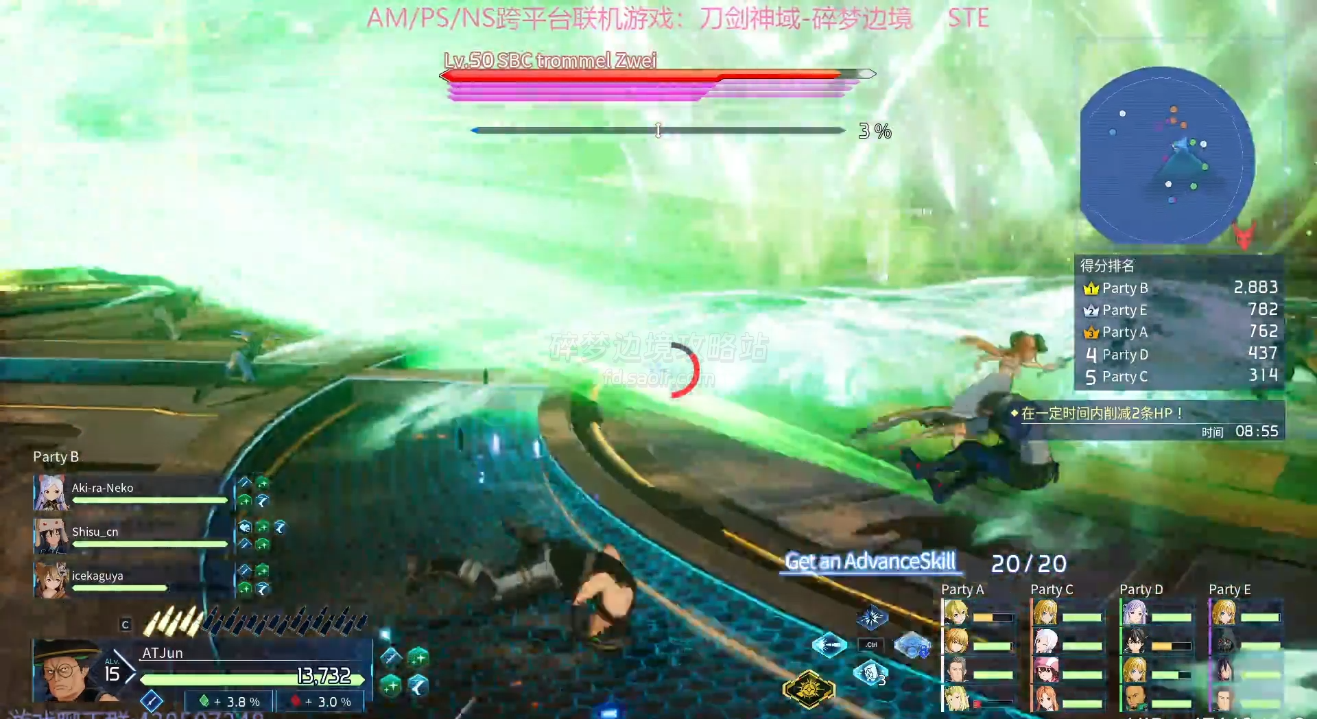 SBC的第一阶段为导弹+机械臂的下砸附带火圈。由于第一阶段的棱镜不会发射激光,我们只需要站在中央圆盘靠BOSS方位的外圈蓝色玻璃圈内就可以安全规避。只需要注意SBC特殊的伸手方形框可能会直接落向中央平台,其余招式走两步就完事了。