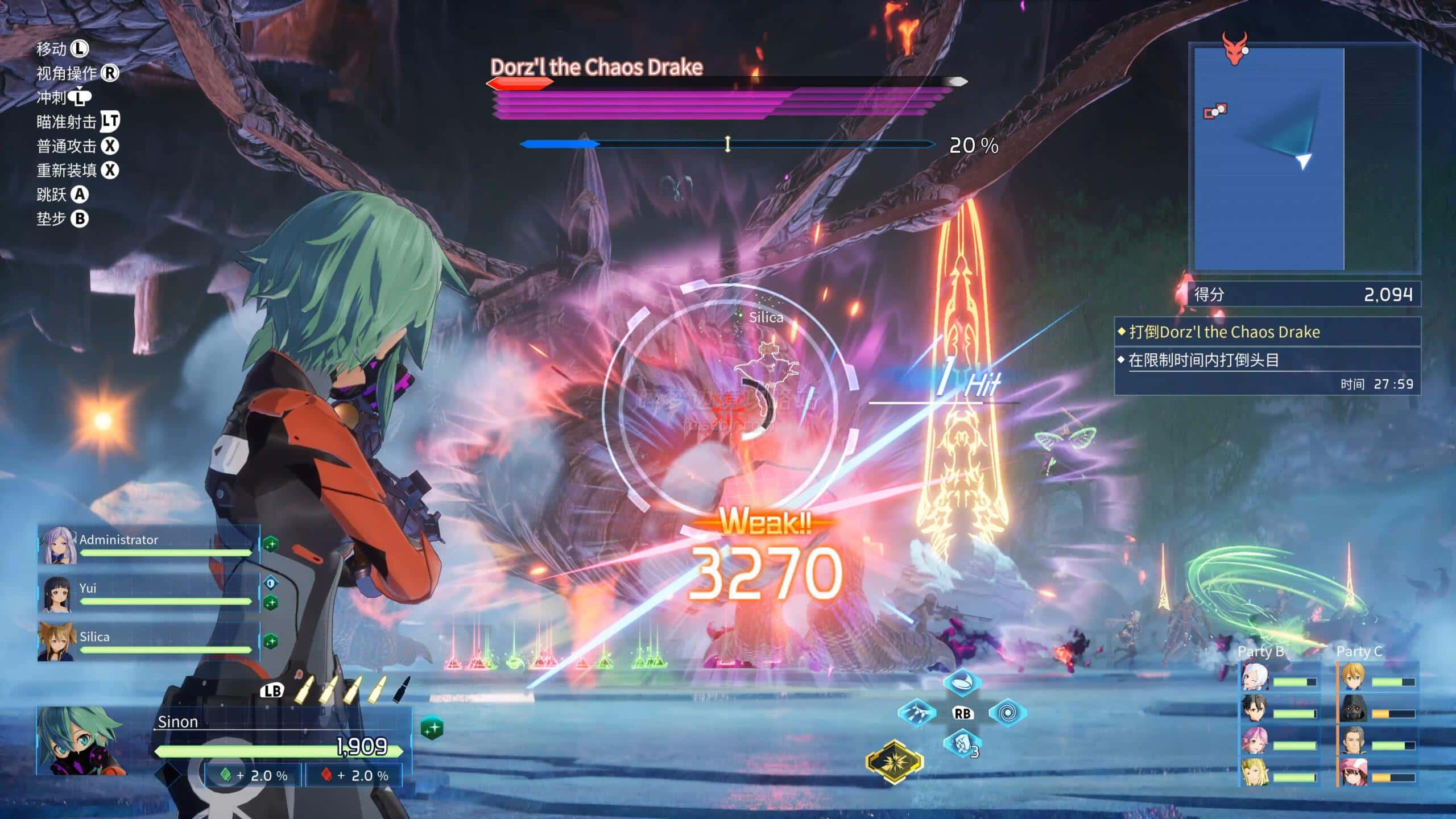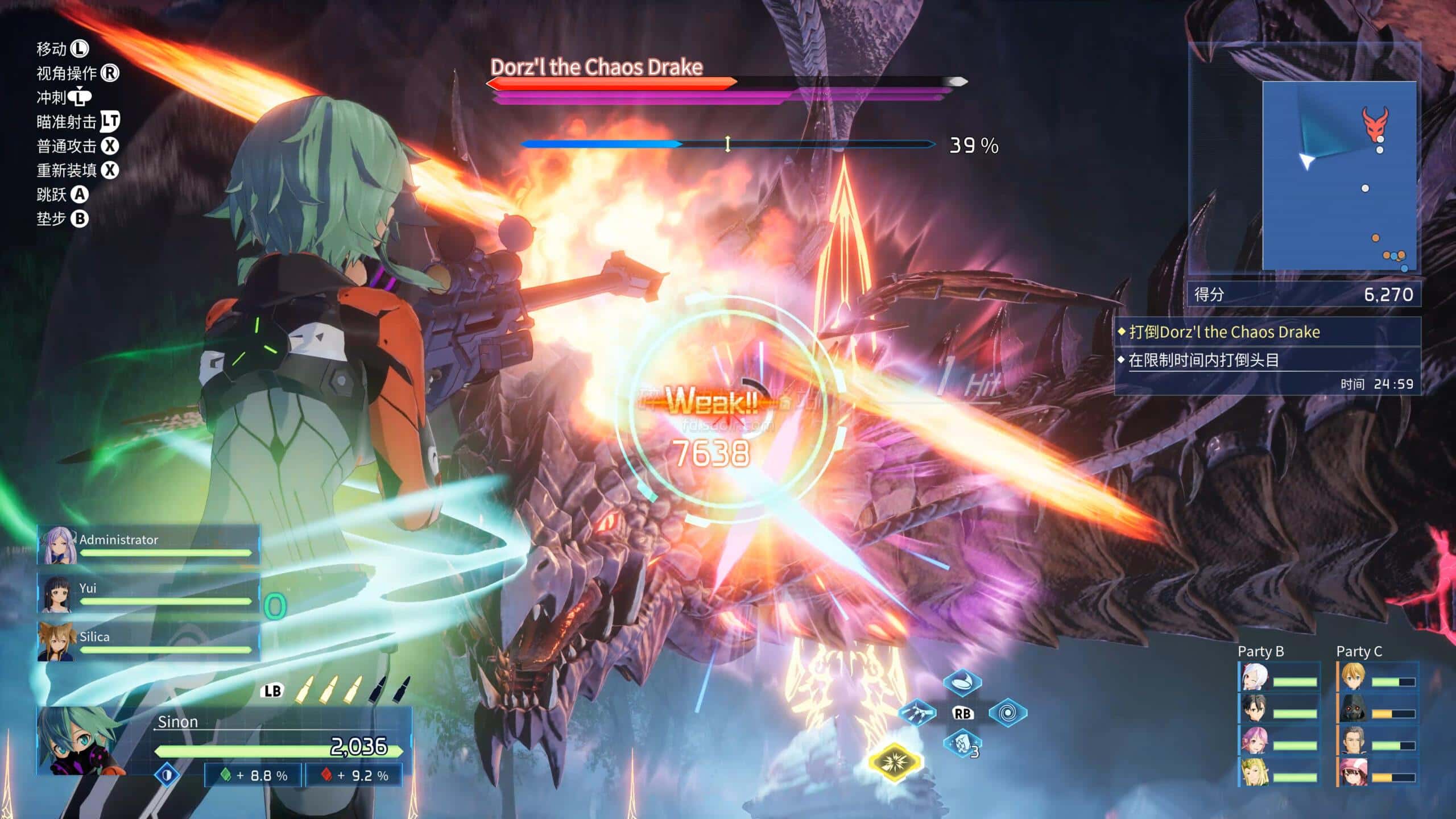 本关S评价相当苛刻,特别是我方武器特别好的时候容易过快击杀导致分数不足,这次的boss为飞龙型,初始弱点是头部。可破坏部位有4个,各1000分,分别是前翅膀、后翅膀、胸口、尾巴,左右两只前翅膀共享血量,破部位会一起破,后翅膀同理。顺带一题胸口和尾巴破掉后会变成弱点。