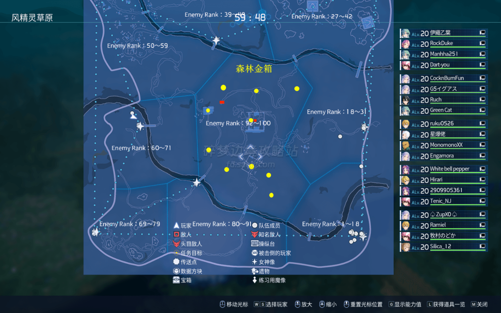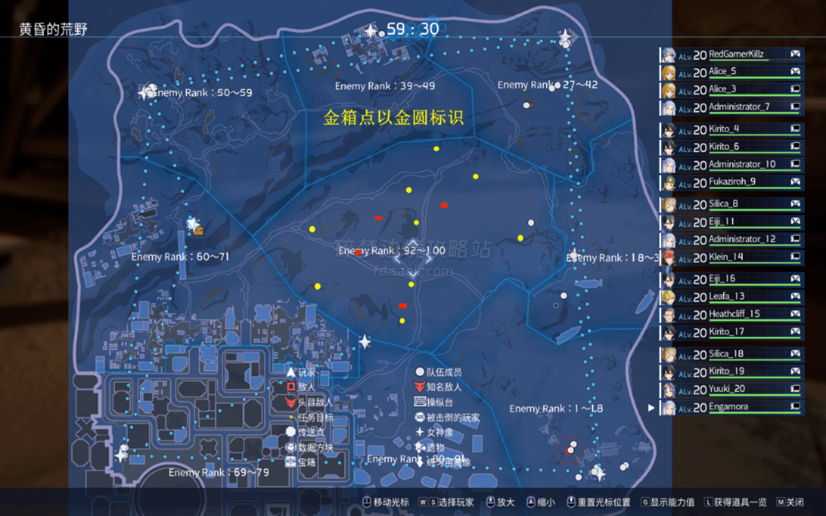 ※图片知名敌人点位皆由@Engamora提供,兔子点位我有可能并不完全,或者说其他等级区域也会有,这里只标注最高区域※